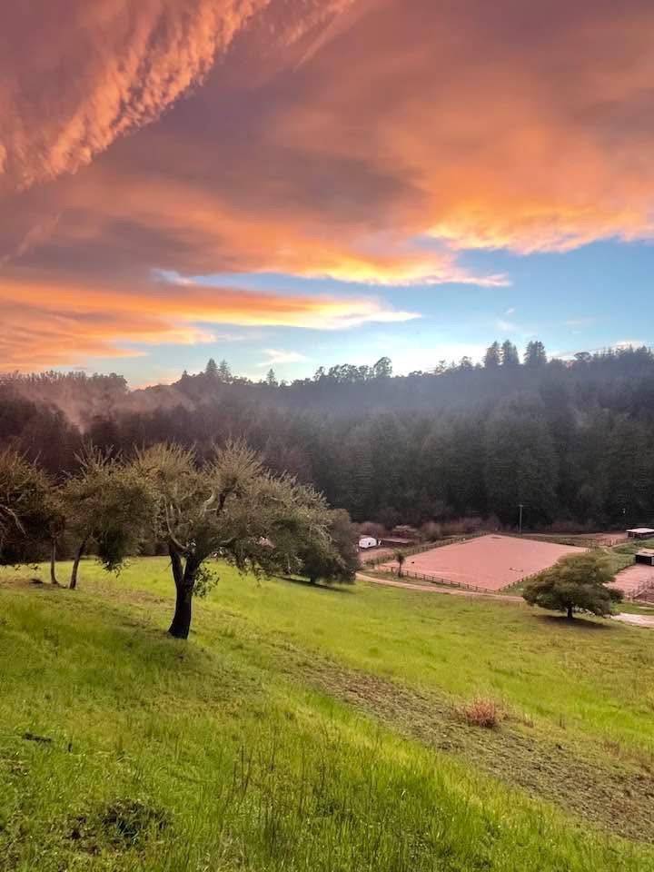 Shakespeare Farm is nestled in the heart of the Santa Cruz Mountains with sweeping vistas of the Monterey Bay. The land meets the sea in a harmonious blend of colors and textures, and the gentle coastal breezes and stunning sunsets are perfectly complemented by giant, ancient redwoods, which offer cool shade and a sense of timelessness that enriches the experience of all who visit. Best of all, the Santa Cruz Mountains are renowned for their lush landscapes and diverse ecosystems, which offer an idyllic setting for both horse and rider.