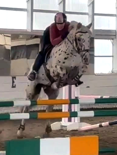 Pyxis av Drömmarna is a 16.2h Chestnut Leopard Knabstrupper, KNN registered, standing at Shakespeare Farm. He is a stallion of true multi-discipline distinction—accomplished in both cross-country and dressage, demonstrating courage, balance, rideability, and classical athleticism.